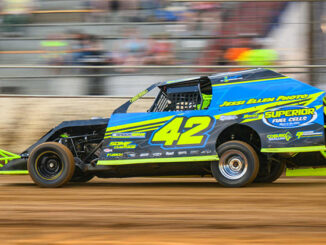 After scoring a convincing victory in the Prelude to the 44th Anniversary Race for IMCA Modifieds Sunday night, the Friesen Performance IMCA Modified driver made a repeat visit to victory lane and earned a $4,400 payday winning Monday’s anniversary special at Benton County Speedway.