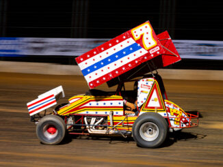 The most unpredictable race of the night came from the Mach-1 IMCA Sport Compacts. Front-row starter Colton Lodermeier led early, but two cautions on the opening lap shook up the field. Once things settled, eighth-starting Russell Kiker Jr. grabbed the lead on lap seven. But the top spot didn’t stay his for long—10th-starting Travis Roush used the high side to take command just one lap later.
