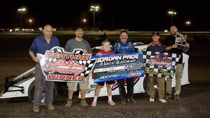 ARDMORE, Okla. (Oct. 4, 2025) — The Friesen Performance IMCA Modifieds headlined Saturday’s Jordan Page Winter Nationals finale at Southern Oklahoma Speedway, where Locust Grove, Arkansas, veteran Jeff Taylor stormed from seventh starting to win the 30-lap, $2,500-to-win feature — his third victory of the season in the GRT Race Cars South Central Region, all coming at the Ardmore 3/8-mile clay oval.