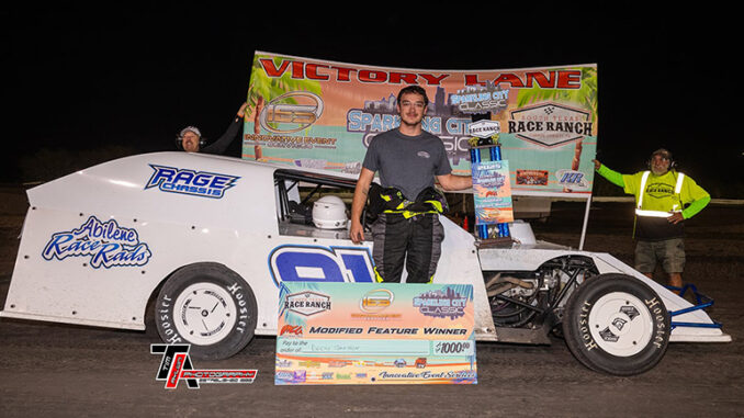 CORPUS CHRISTI, Texas (Dec. 11, 2025) — Drew Janssen powered to victory in the Friesen Performance IMCA Modified 20-lap main event on opening night of the inaugural Sparkling City Classic at South Texas Race Ranch. The Pella, Iowa, driver wheeled the Kyle Wisdom-owned no. 91 to the $1,000 triumph in the first night of action for the new event. The win also placed Janssen on the eligibility list for the 2026 Fast Shafts All-Star Modified Invitational to be held during the Speedway Motors IMCA Super Nationals fueled by Casey’s.