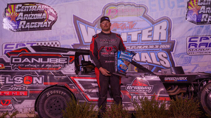 CASA GRANDE, Ariz. (Jan. 31, 2026) — Brandon Beckendorf captured a dramatic victory in the Karl Kustoms IMCA Modified feature during the eighth and final night of the DeVilbiss Racing Chassis IMCA TV Winter Nationals powered by Pitt Stop Motorsports and Dynamic Drivelines at Central Arizona Raceway, edging out defending Winter Nationals champion Ethan Braaksma in a late race finish.
