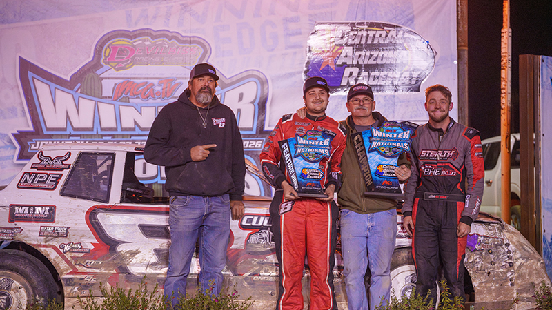 CASA GRANDE, Ariz. (Feb. 4, 2026) — More than 300 drivers representing five Speedway Motors IMCA Weekly Racing divisions converged on Central Arizona Raceway for the 2026 DeVilbiss Racing Chassis IMCA TV Winter Nationals, competing across eight nights of racing at the 3/8-mile clay oval. Racers from over 20 states and multiple Canadian provinces made the journey to Casa Grande, highlighting the national and international reach of the Winter Nationals as first-time champions emerged across every division.
