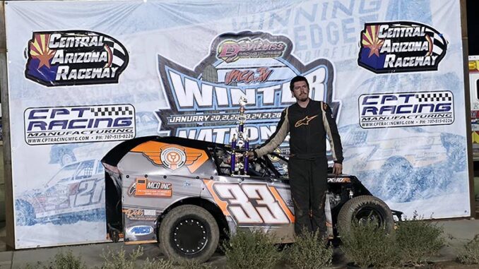 CASA GRANDE, Ariz. (Feb. 7, 2026) — Queen Creek’s Shane Hinsley turned in a commanding performance in the Stealth Racing IMCA Mod Lite feature at Central Arizona Raceway, leading every lap en route to a runaway victory — his first of the year.