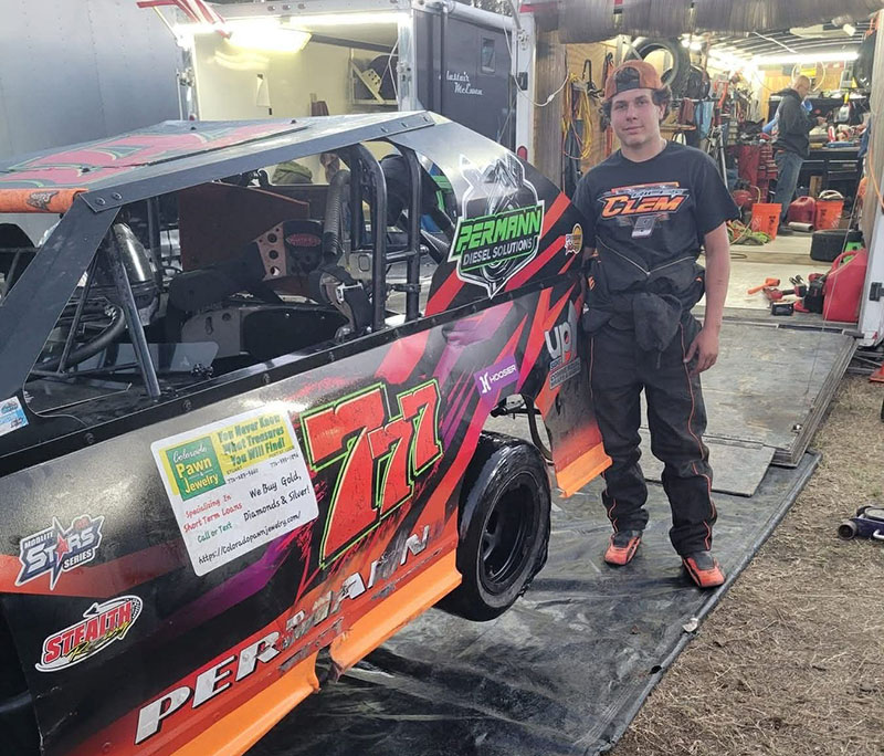 Dylan Permann stands alongside his No. 777 Stealth Racing IMCA STARS Mod Lite during the Florida Winter Nationals, where the Port St. Lucie, Florida driver assembled a championship-winning points campaign across the eight-race series. (Courtesy Photo)