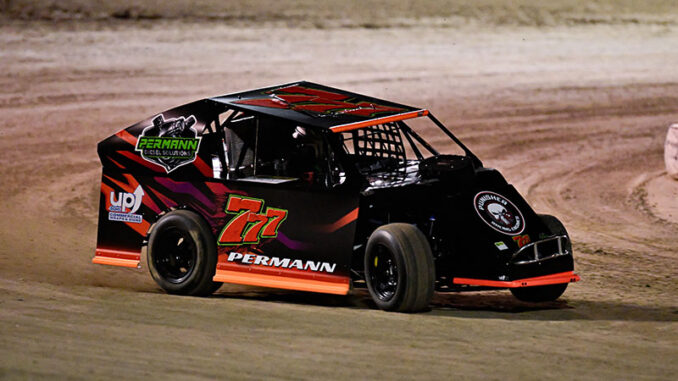 Dylan Permann stands alongside his No. 777 Stealth Racing IMCA STARS Mod Lite during the Florida Winter Nationals, where the Port St. Lucie, Florida driver assembled a championship-winning points campaign across the eight-race series. (Courtesy Photo)