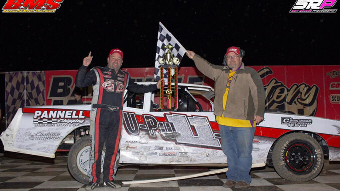 Wendell Wallace overcame an early challenge and controlled the closing laps to capture the Karl Kustoms IMCA Modified feature at Batesville Motor Speedway. The $1,500-to-win main event served as a Fast Shafts All-Star Modified Invitational qualifier for the IMCA Super Nationals, with Wallace already on the eligibility list after winning the opening leg of last year’s Race For Hope 71.
