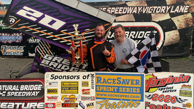 NATURAL BRIDGE, Va. (Apr. 18, 2026) — Chris Humblet has won a number of Virginia Sprint Series asphalt events, but on Saturday he picked up his first dirt track victory when the RaceSaver IMCA Sprint Car series rolled into Natural Bridge Speedway.