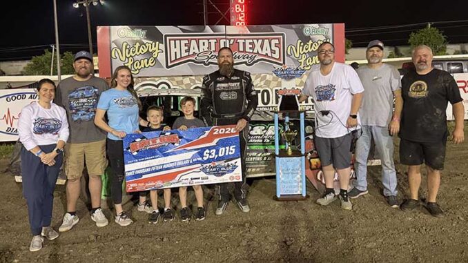 2026 IMCA TV Winter Nationals champion Cameron Starry finished second at the line, followed by Abbey in third, Clark in fourth, and three-time Texas State champion and five-time Heart O’ Texas track champion Jason Batt in fifth.