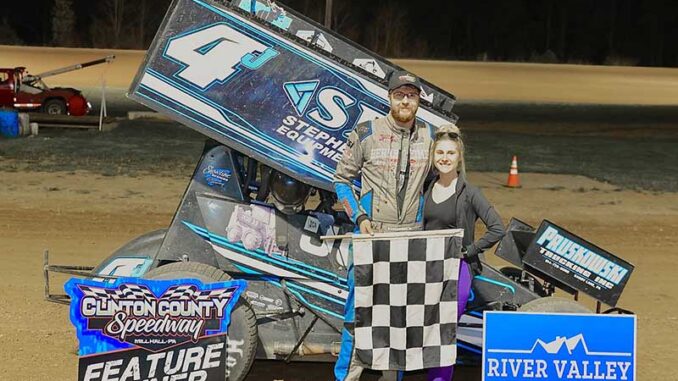 Mill Hall, Pa. (Apr. 24, 2026) — Jacob Gomola of Guys Mills, Pennsylvania, was victorious Friday in the RaceSaver IMCA Sprint Car feature at Clinton County Speedway, earning his first win of the 2026 season after starting third.
